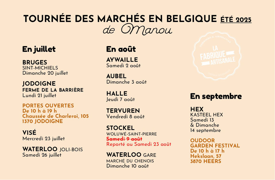 Inscrivez-vous afin de recevoir le programme des marchés de chaque tournée (printemps, été, automne, hiver) et mes marchés/portes ouvertes à la Ferme de la Barrière. Pour plus d'informations,